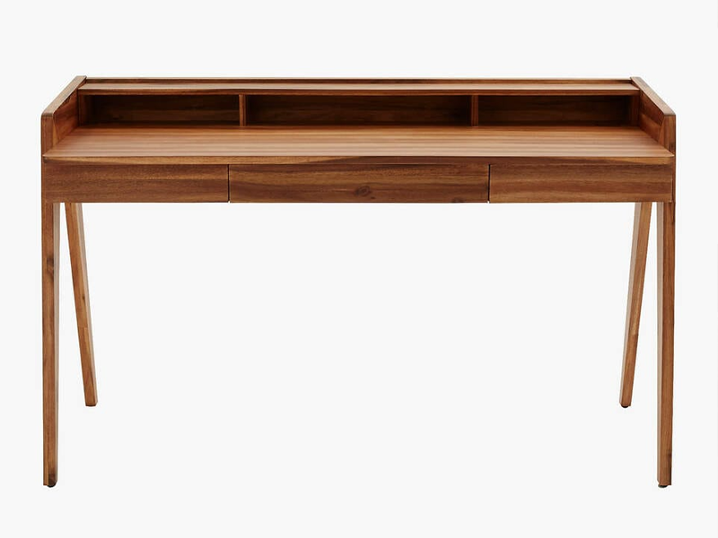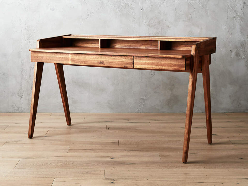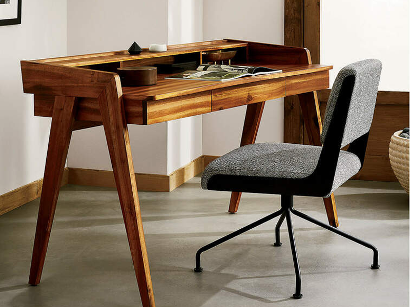 Bàn làm việc BLV14 với kiểu dáng đẹp và mang tính kiến trúc. Bàn làm việc bằng gỗ do BB Furniture sản xuất tại xưởng. Bàn làm việc - bàn học với tông màu ấm áp và vân gỗ duyên dáng, gỗ sồi tự nhiên cao cấp bền vững chắc chắn có một ngăn kéo ở giữa có thể lật xuống phía trước để dễ gõ phím, cũng như hai ngăn kéo bên hông và ngăn chứa thêm trên mặt bàn.