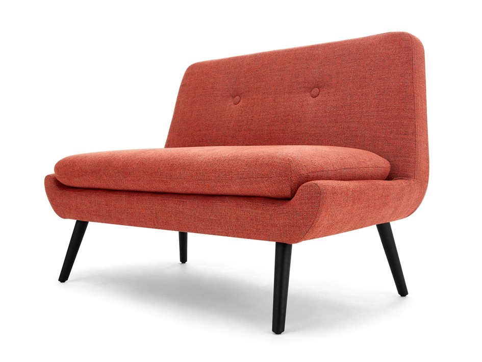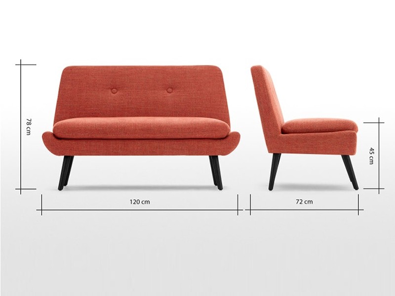 Sofa với vẻ cong nhẹ nhàng hai bên của phần nệm ngồi, và điểm khác biệt là không sử dụng phần tay cho thiết kế này nhằm tận dụng không gian ngồi được rộng rãi hơn. Chân gỗ sồi, chân cao cổ điển, kết hợp với hai nút nhấn ở phần lưng tựa như đang chăm chú nhìn về một hướng, tất cả tạo nên vẻ hoàn hảo cho bộ sofa này.